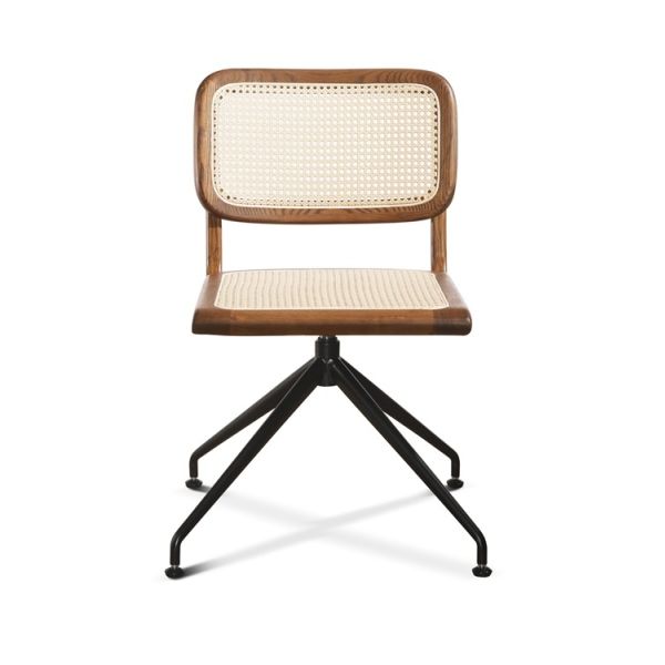 Wood With Walnut Color Swivel Task Chair with Rattan Back For home office / Studio / Library