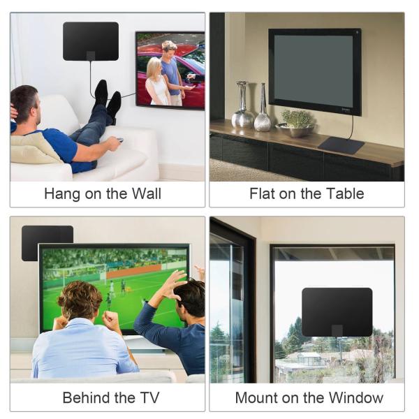 50 Mile Range 4K Amplified Ultra-Thin Indoor Plate HDTV Antenna With Detachable Amplifier Signal Booster