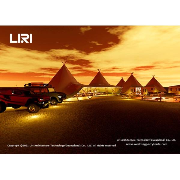 In the selection of materials, Tipi Glamping Tent elaborately selects the log wall and wooden structure, so that the shape of the entire tent resembles the skirt. The khaki color combination makes it more original, ethnic, and less commercial atmosphere. The fabric and wooden structure form a unique landscape on the vast ground.