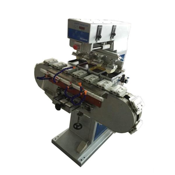 It is a big rotary printing machine, conveying products by rotary type turntable. The products can be overprinted with 4 colors. Running a circle can finish one time overprint. Comparing with shuttle pad printer, it come to a high steps. It can print bigger products with 4 color with fast and steady. It's suitable for printing logo on the surface of electronic products, plastic shell, hardware, stationery etc.