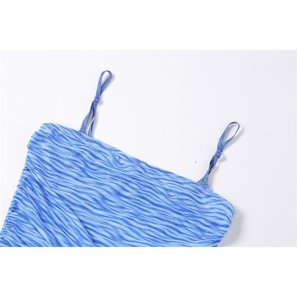One Line Neck Ladies Camisole Tank Tops See Through Net Gauze Printing