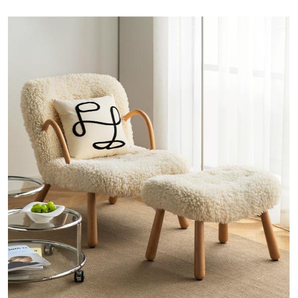 Fabric Leisure Chair White Lamb Wool Sofa Chair Leisure Chair Pedal Combination