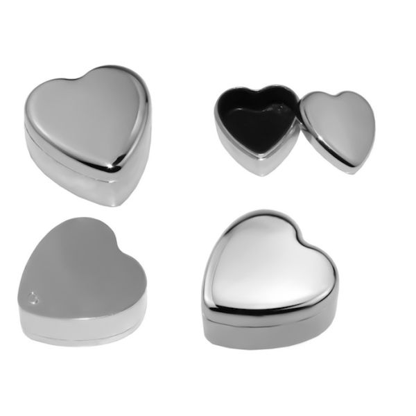 Luxury Plating PVD Silver Zinc Alloy Metal Houseware Heart Shape Jewelry Box 40*40*20MM