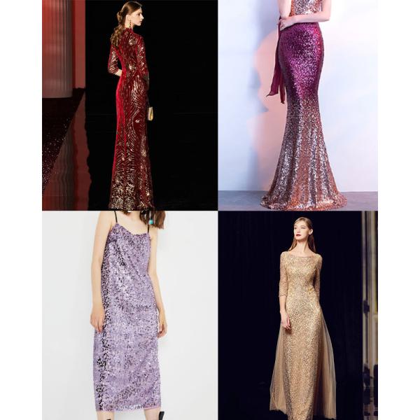 Buy 145gsm Knitted Glitter Metallic Sequin Fabric 145cm Evening Dress Material at wholesale prices