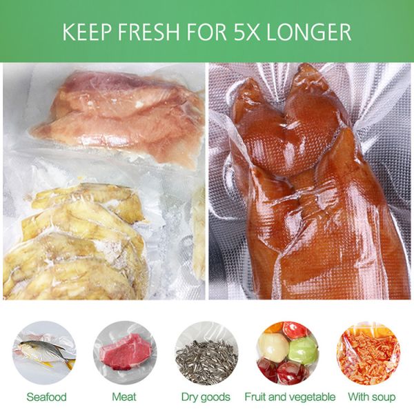 Food vacuum sealer removes air from specially designed bags. Multi-layer material heat seals to keep air out and prevent freezer burn, reduces spoilage and food waste. And cooking and meal preparation will become easier, more economical and faster