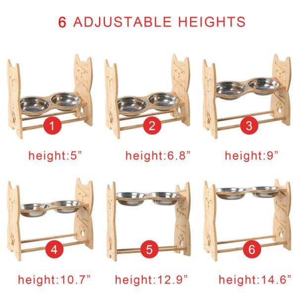 Natural Bamboo Wood stainless steel Height Adjustable Elevated Slant Dog Bowls
