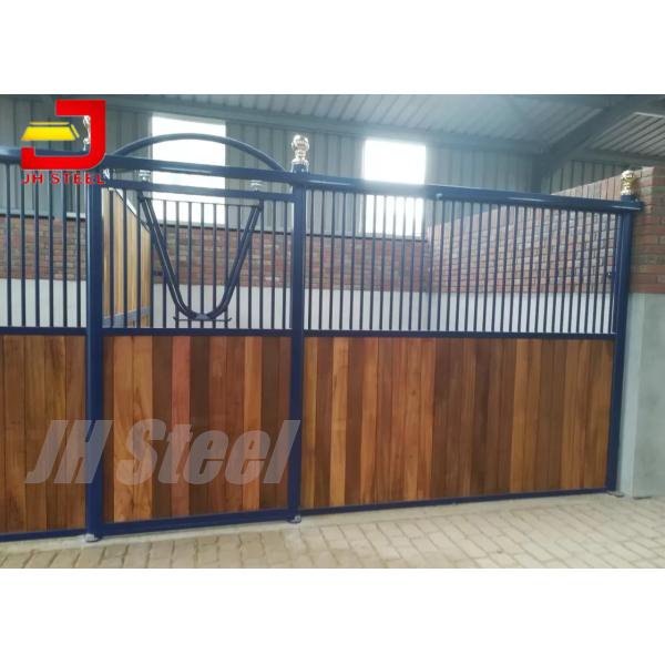 | Advantage | (1.) Full welds will make sure the stalls are strong and durable. (2.) No sharp edges promise the people and horse safe. (3.) Yoke door allows horses place his head outside. (4.) Powder Coated Finish: We can PC any color you like. Say, Black Color, Blue Color, Hunter Green color, etc. (5.) Assembly easily: use heavy duty bolts or different way connector to connect together. (6.) More style stable are available, sliding front, and swing door, open door etc... |