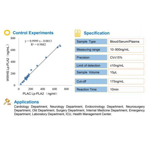 | 8 | Lp-PLA2 | WB/Serum/Plasma | 10min. | 10-900ng/ml | <175ng/ml | Risk evaluation of ACS and atherosclerotic ischemic stroke patients. |