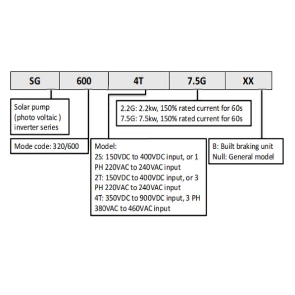 | Recommended input voltage (Voc and Vmmp) | Voc 180(VDC), Vmpp 155(VDC) for 1S model or 110V AC pumps Voc 355(VDC), Vmpp 310(VDC) for 2T model or 220V AC pumps Voc 620(VDC), Vmpp 540(VDC) for 4T model or 380V AC pump | |||||||||