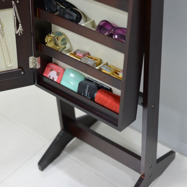 Floor standing jewelry cabinet with mirror