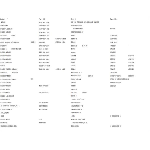 1. Part No. 2.Engine model 3.Machinery model 4. Description and