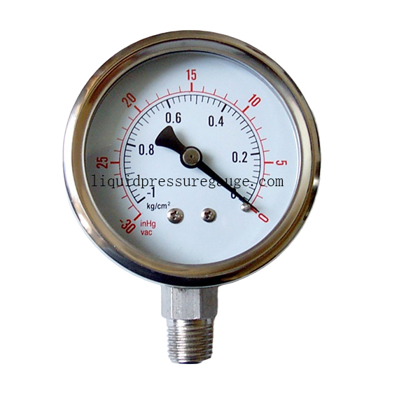 2-1/2 inch dry Pressure Gauge, stainless steel case, -30inHg-0, 1/4 NPT lower mount