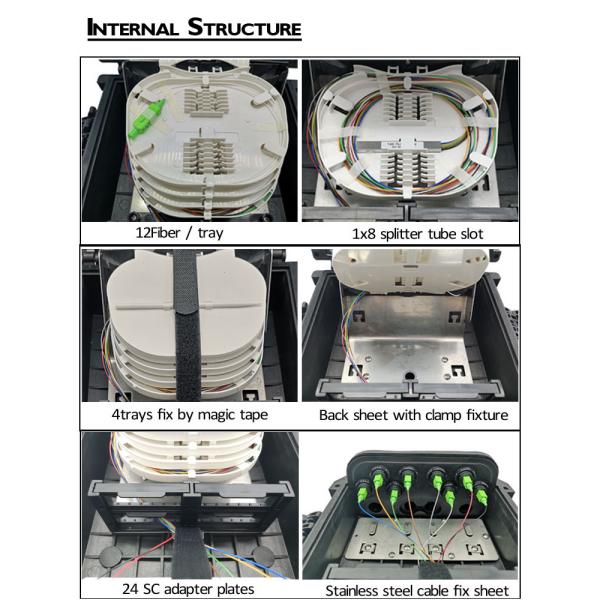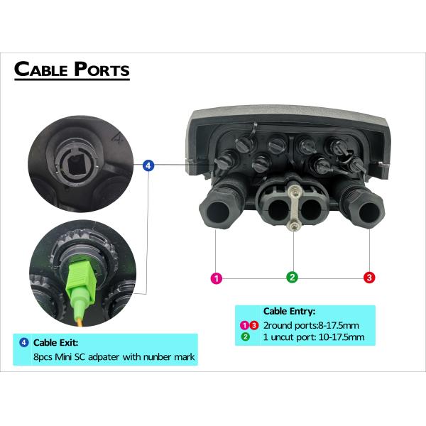 IP68 Black PP Plastic 8 Ports Optical Enclosure Mid Span Cable Distribution Box with Mini SC adapters