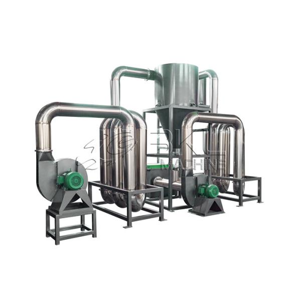 After dewatering process ,Most percent waters will be removed from the recycled material. The exit material will be sucked by the Fan to go through the long pipes, Meanwhile, the heating device supply the hot air to the long pipes which could reduce the balance moisture in the materials during the transport to the storage silo.