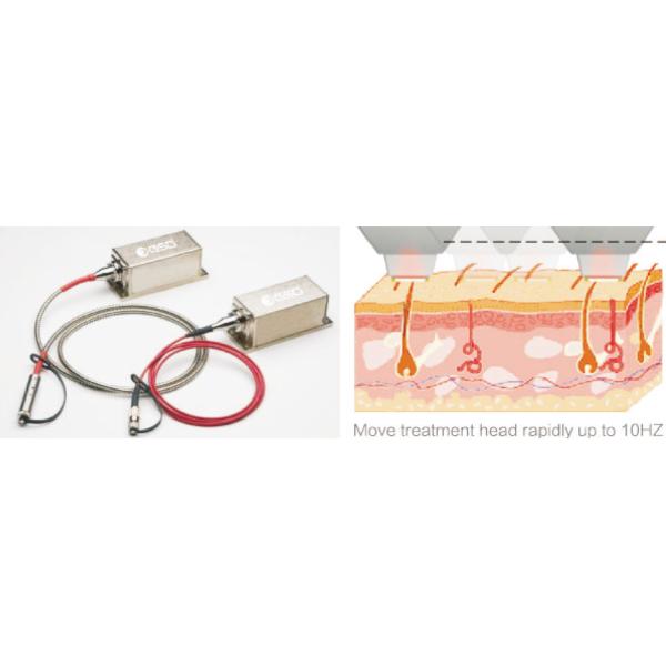 The system adopts a capacity coupling electrode to deliver radio waves and create an electric field passing through the skin layer and getting into the hypodermia. The electric field exchanges the polarity 10 million times per second under the high frequency of 10MHZ. To respond the extreme speed of electrode, particle of skin have to exchange directions in the same frequency, by which natural electric resistance of the hypodermia moves and creates heat energy . With the feature that derma collagen extends, recombines and reproduces when the temperature reaches to 60°C-70°C, the skin gets tightened and wrinkles get removed.