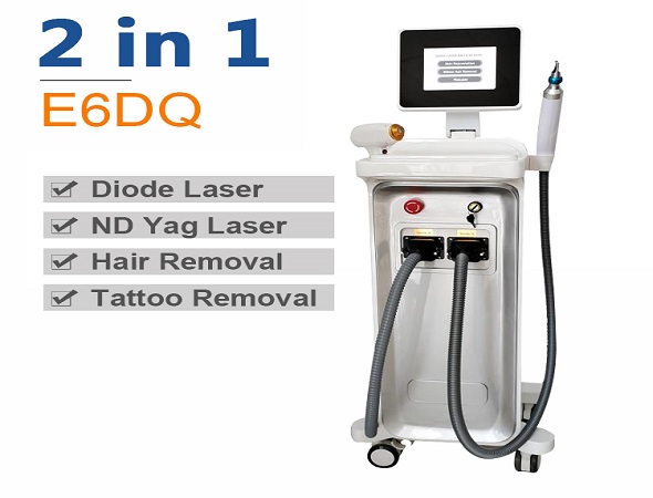 E6DQ Diode Laser Nd Yag Laser 2 In 1 Multifunction Beauty Machine is Diode LASER&ND YAG LASER Combin product..It combined the function of Diode Laser Hair Removal, Q Switched Nd: Yag Laser for tattoo removal ... You can get so many treatment results with only one machine!!It good invenstment on beauty salon. It can creat good economic benefit..