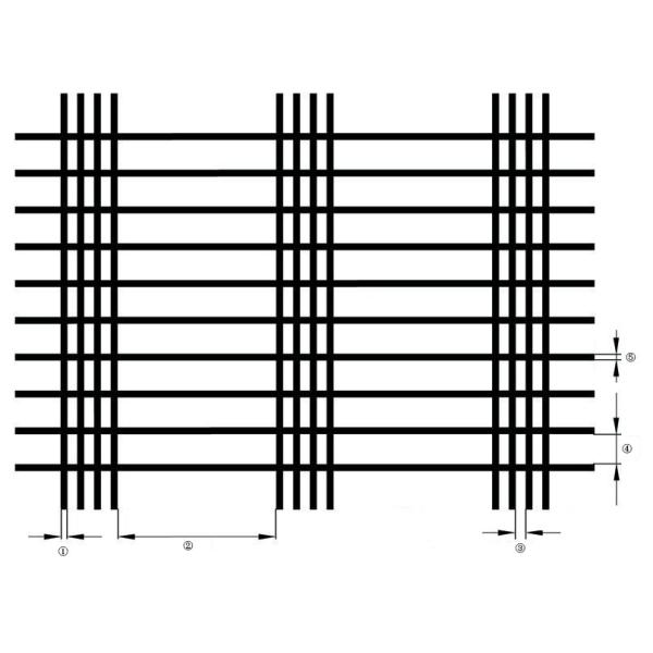 Answer: Material, warp wire diameter(①), ware wire distance(②③), welft wire distance(④), welft wire diameter(⑤), width x length, quantity.