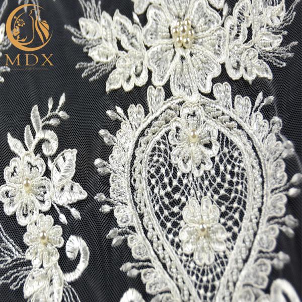 Beautiful Pattern Luxury Beaded Embroidery White Lace Fabric For Dress