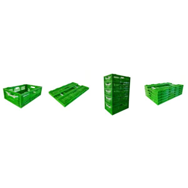 600*400*120mm Virgin Plastic Fruit Loading Crates Collapsible Stacking