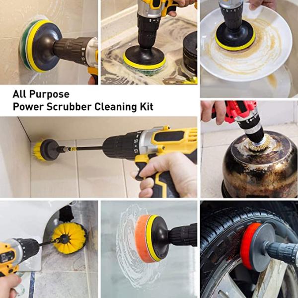 | Product No. | 4-piece drill brush car detail kit with extended attachments, soft bristles electric scrub brush set for cleaning cars |