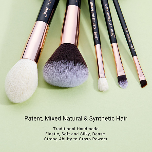 Jessup 15pcs Black/Rose gold Multitask Essential Makeup Brush Set