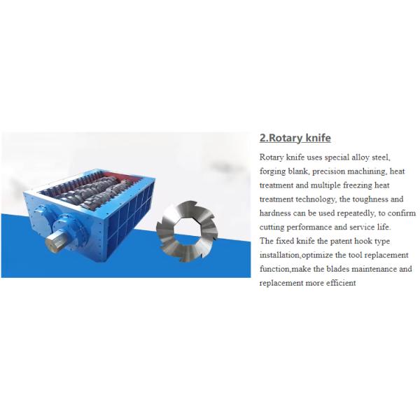 The material enters the shredding box through the feeding system. The shredding blade is carried on the box. The pushing box pushes the material to the vicinity of the blade. The material is torn, squeezed, and sheared by the shredding blade. Small pieces of material are discharged from the screen holes. Material range that can be shredded.