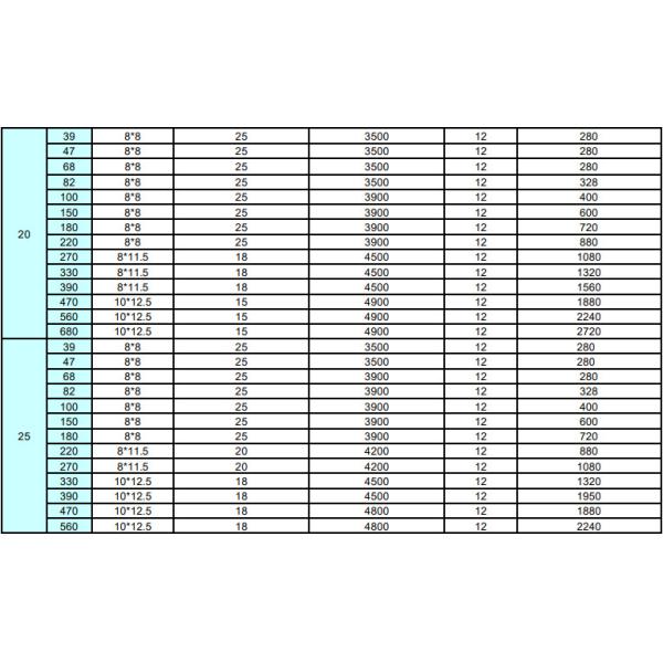 | Category | Series | Temperature range(℃) | Voltage(V) | Capacity(uF) | Specifications | Ripple current | Lifespan(Hrs) |