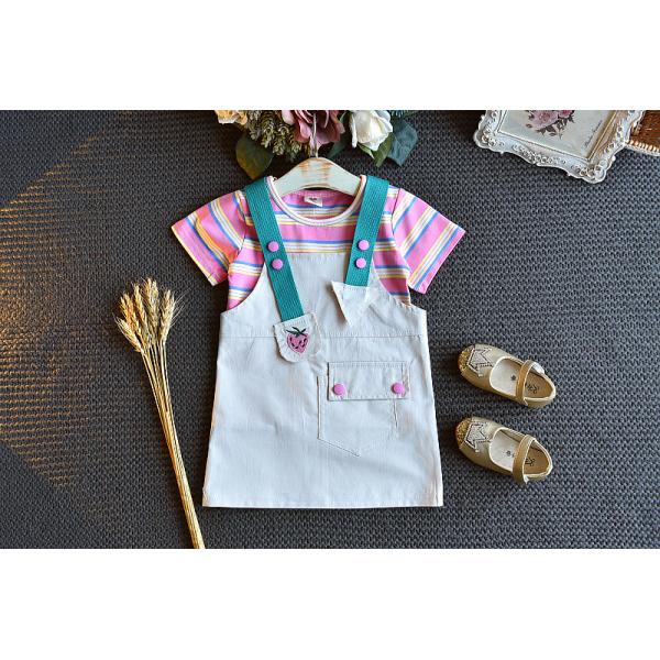 Summer children's clothing girls short-sleeved striped T-shirt two-piece little girl embroidered