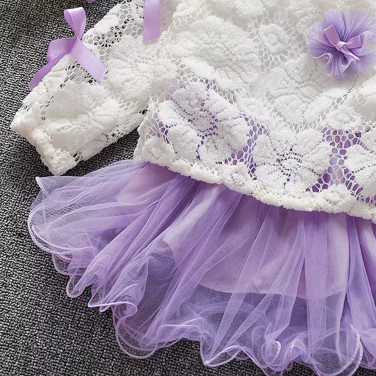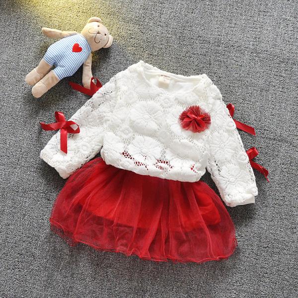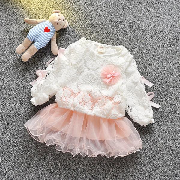 Fashion hollow out long sleeve lace layered hem cute girl suit