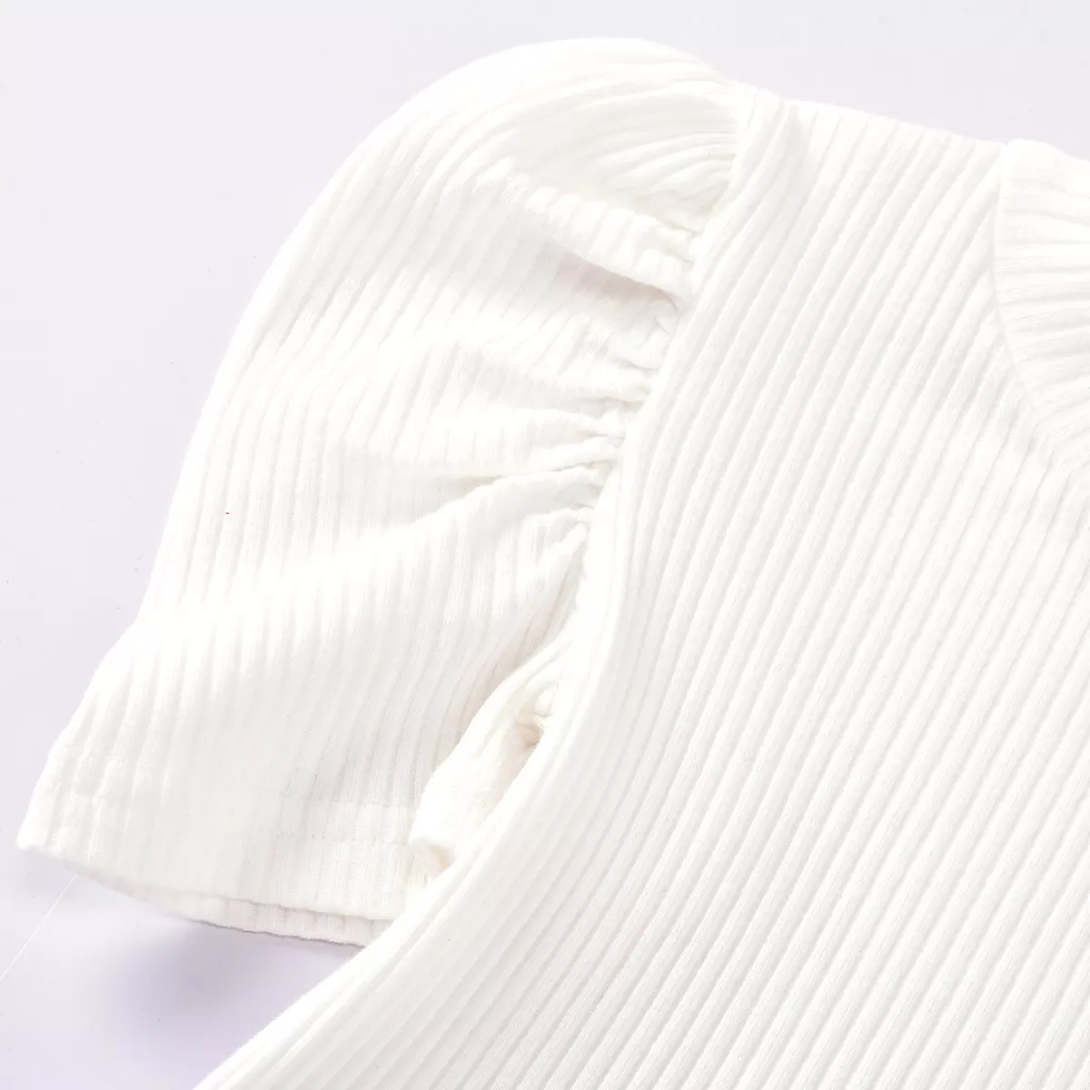 solid color children's outfit sets round neck bubble short sleeve and fringed skirt girl suit