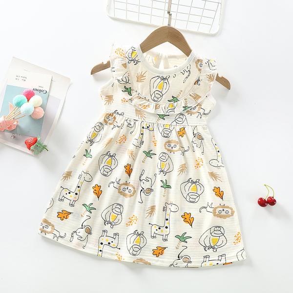 Full print cartoon pattern children's dress clothing summer girls casual dress