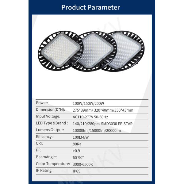 White Light 6000K and Natural White 4000K high bay light, 120 ° beam angle, it can provides enough brightness at night, No strobe light failure low.