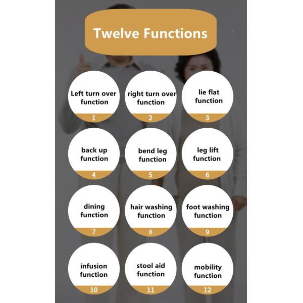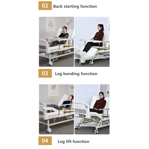 2. When the left and right side turning function is needed, the bed surface must be horizontal, and when the back bed surface is raised and lowered, the bottom surface of the side position must be lowered to the horizontal position.