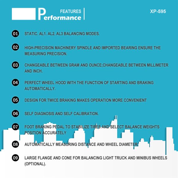 7.Foot braking pedal to stabilize tires and select balance weights position accurately.