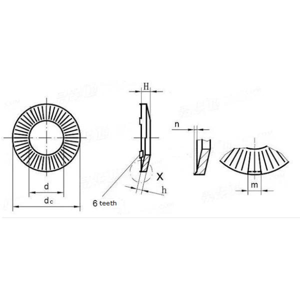 Standard DIN 6795 Knurled Concial Spring Washer with Six Teeth / Grounding Clamping Washers