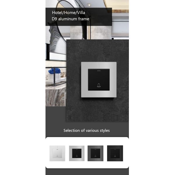 The doorbell switch is generally used in hotel rooms. It is a clear and simple humanized service provided by the hotel to the owner of the room, so that guests can easily have their own space. When the doorbell is pressed, the bell rings, and the switch bounces back when the hand is released.