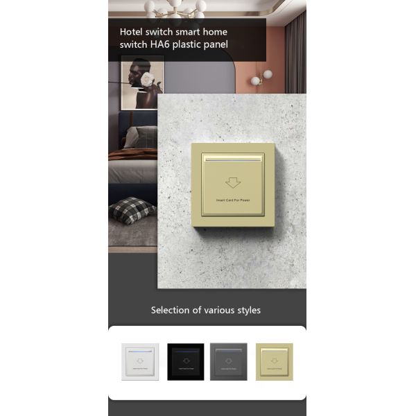 Hotel Energy Saving Switch 220VAC+-10% Plastic Champagne Panel