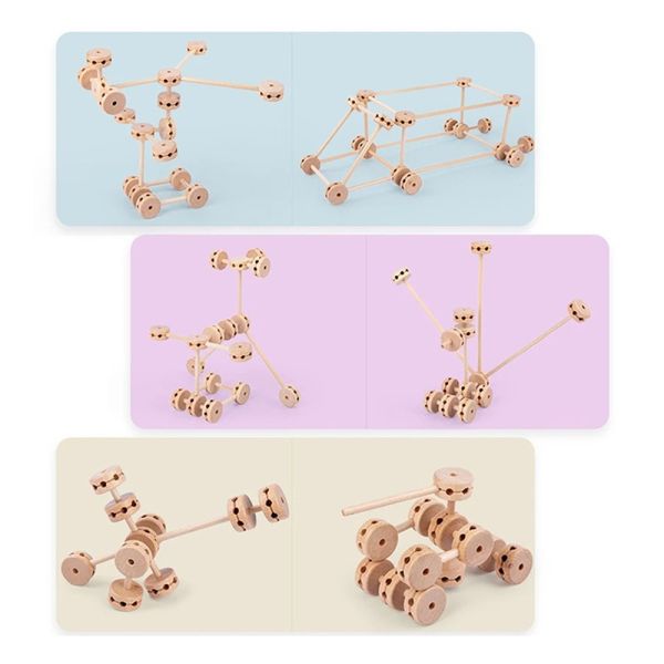 3D Construct Fort Wooden Buliding Blocks Toys Creative Diy Assemble Castles Stick Blocks Children Educational Montessori