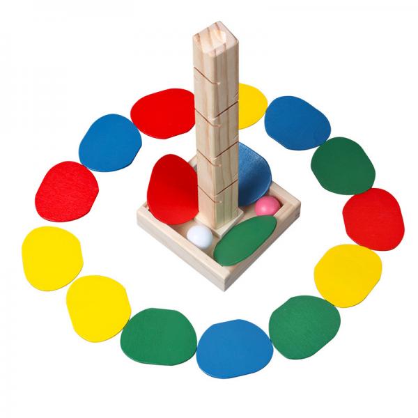 A toy with a very novel design. The small ball rolls from the top of the tower to the bottom of the tower to exercise the flexibility of the baby's eyes. Simple toys, simple childishness, little babies will play again and again enthusiastically.