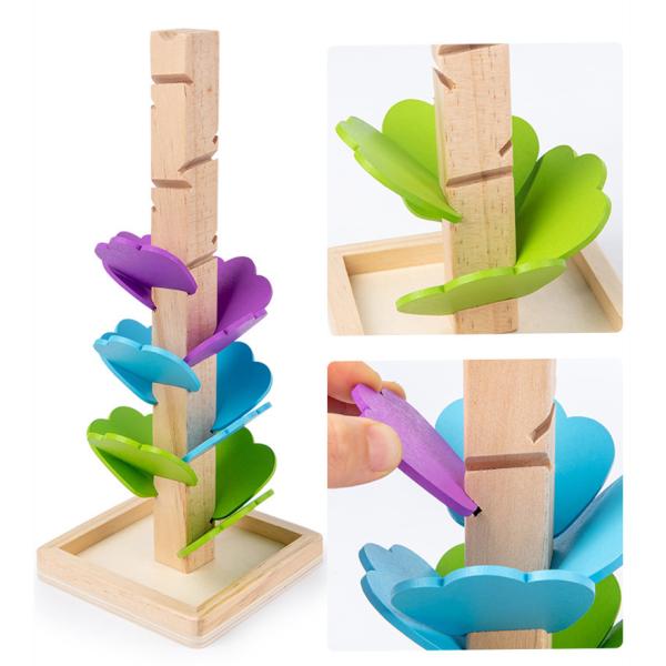 Montessori Baby Wooden Petal Tree Building Blocks Toy Children's Rainbow Ball Ball Run Track Educational Toy for Kids Gi