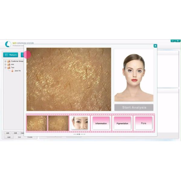 software can now detection: skin moisture and oil on the skin, texture, collagen fiber, wrinkles, depigmentation of the skin, (splash), skin allergies (red blood), pore size (black) and other eight indicators;