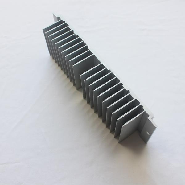 This heat sink is based aluminum profile 6063-T5 material to processing, first of all, we check the raw material dimension is fine or not, the second is that according to the drawing, cutting right length, the third is that accroding to the drawing, use the wood machine to cut the outline dimension, the forth is that use the CNC to do exact dimension, the fifth is do anodizing clear, the last step is riveting, and then inspection/packing. First inspection and patrol inspection are done in processing .