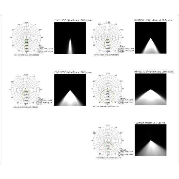 2.For Beam angle H1V1,H4V4 and H5V5,the luminous flux will be 15%