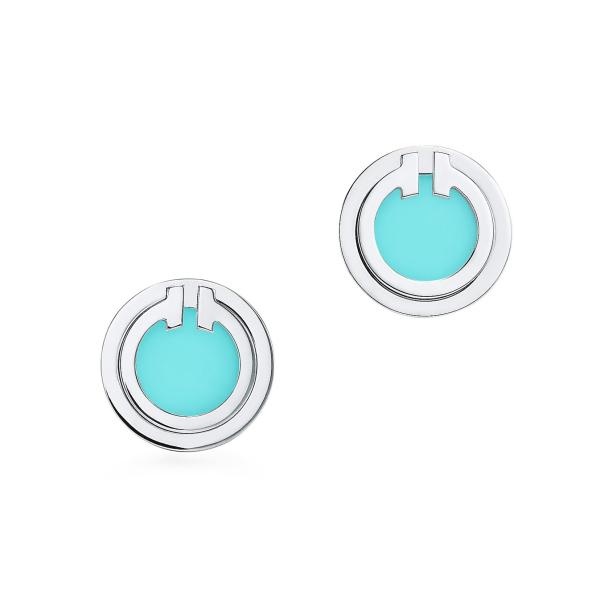 Turquoise Circle Earrings in 18k White Gold 9.65 mm Diameter Each