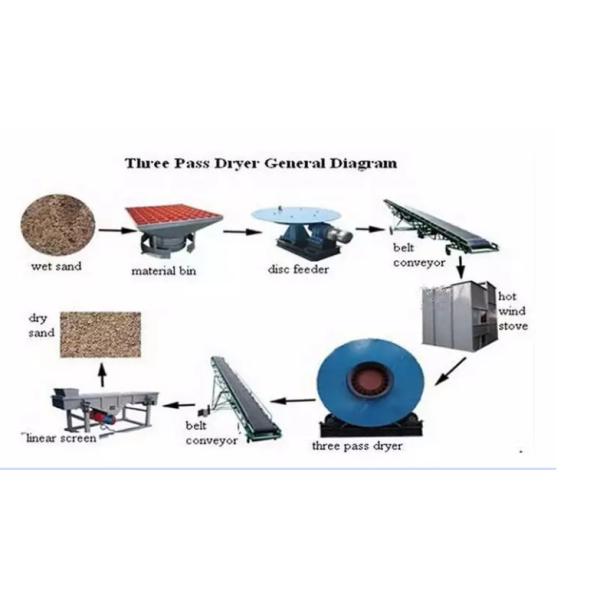three pass river sand drum rotary dryer is made by our company used on building materials, metallurgy, chemical industry, cement plant for drying of sand, sawdust, wood shavings, chicken manure, iron ore, limestone slag, coal powder, slag, clay stone,etc. This Rotary Drum Drier is composed of rotary body, lifting blade, driving device, supporting device and sealing ring,etc.