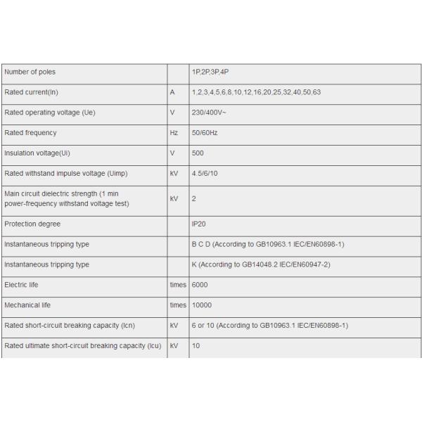 | Rated current(In): | 1,2,3,4,5,6,8,10,12,16,20,25,32,40,50,63 |