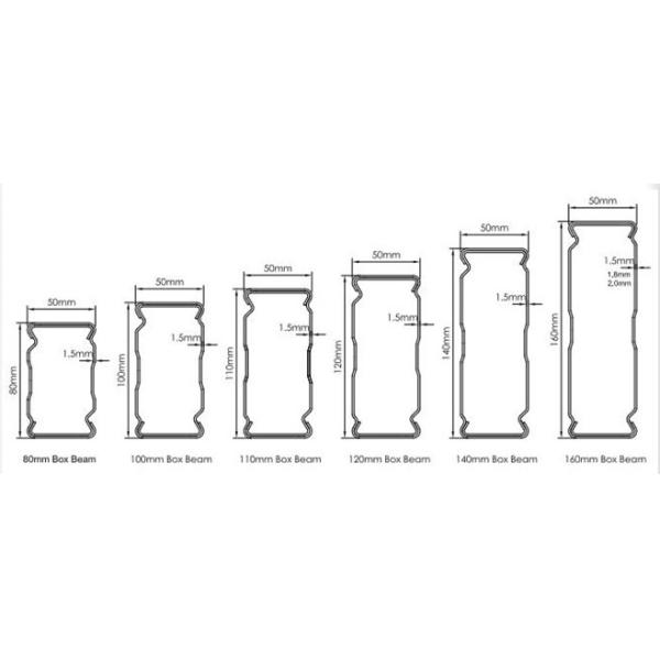 BOX beams are available in a comprehensive range to cover most loading requirement .beam section heights available from 80-160mm, thickness are available 1.5,1.8,2.mm.