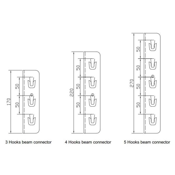 Euro beam connectors are designed to increase resistance to sideways movement and effectively take vertical loads and this, movement on specially designed high-performance hooks. Beam connectors available for use are 3-5 hooks, depending on the beam section height and beam loading.