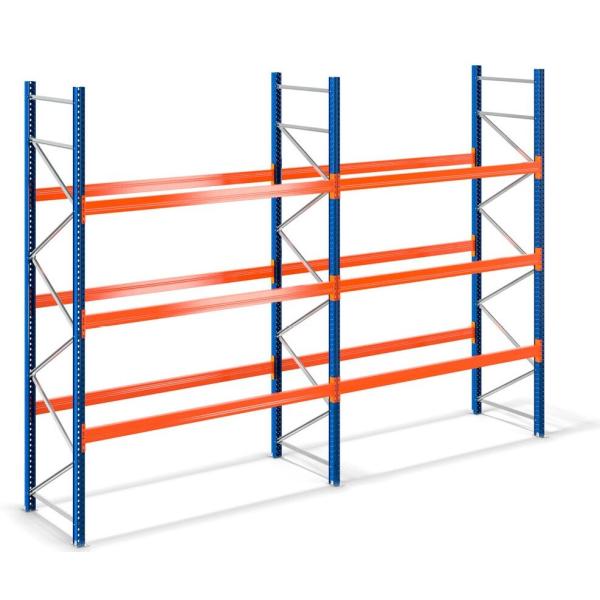 Euro pallet racking upright has an optimum profile with a 50mm hole pitch for better capacity and space utilization. The uprights are made from high-quality steel and are very rigid. These are then bolted from the stable frame using horizontal and diagonal bracing. Different kinds of base plates ensure loads even distributed on the floor.