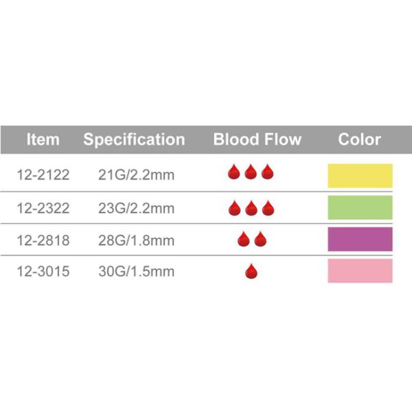 | Gauge | 21G, 23G, 28G, 30G |